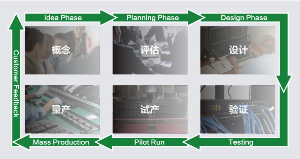 鴻騰光電嚴(yán)謹(jǐn)?shù)膶⒄麄(gè)設(shè)計(jì)品保劃分成了6個(gè)部分,分別是概念、評(píng)估、設(shè)計(jì)、驗(yàn)證、試產(chǎn)、量產(chǎn);只有在每個(gè)階段通過(guò)嚴(yán)格的檢核,才能進(jìn)入下一個(gè)階段,最終需經(jīng)過(guò)六個(gè)嚴(yán)苛的檢核點(diǎn),確認(rèn)品質(zhì)可靠,產(chǎn)品才可以順利的誕生,交到客戶的手中。