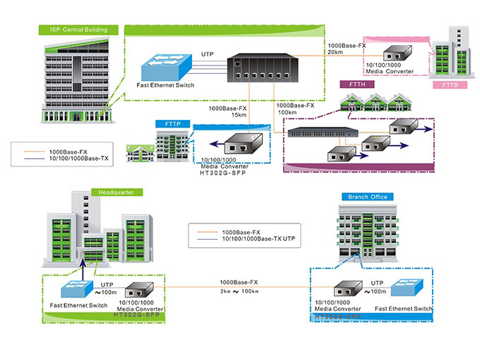 HT302G-SFP將網(wǎng)絡(luò)的傳輸距離從100米的銅線極限擴(kuò)展到120Km。支持雙纖多模、雙纖單模和單纖單模光纖傳輸。為了適應(yīng)各種工作環(huán)境,HT102-SFP系列收發(fā)器不僅設(shè)計(jì)了可放置于桌面或掛墻的結(jié)構(gòu),也設(shè)計(jì)了可上19'' 14/16槽機(jī)架式結(jié)構(gòu),方便客戶集中供電,節(jié)約空間。