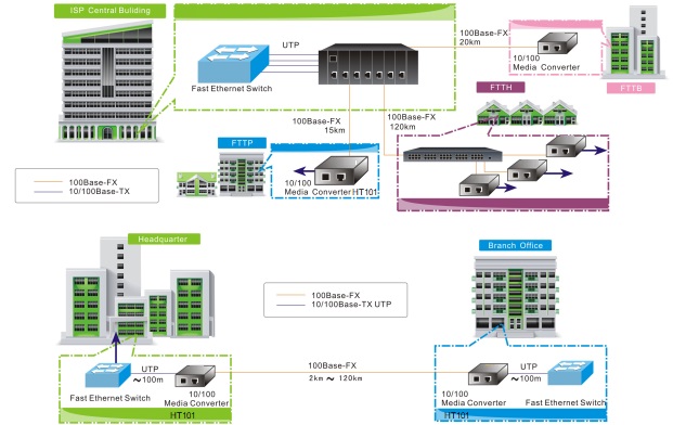 單纖單模:20/40/60/80/120Km 五類雙絞線:100m EIA 568A/B |