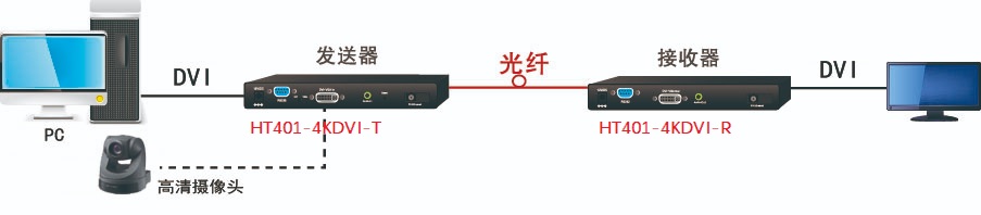 HT401-4KDVI-T/R是一款支持4K分辨率的超高清DVI光端機(jī),通過(guò)專利轉(zhuǎn)換芯片將DVI信號(hào),轉(zhuǎn)換成10G的差分信號(hào),通過(guò)光模塊及光纖進(jìn)行發(fā)送和接收,實(shí)現(xiàn)對(duì)DVI高清多媒體信號(hào)的遠(yuǎn)距離傳輸,通過(guò)不同傳輸距離的光模塊,實(shí)現(xiàn)最遠(yuǎn)可達(dá)60KM的遠(yuǎn)距離傳輸,此HT401-4KDVI-T/R產(chǎn)品是一款無(wú)損失、無(wú)延時(shí)傳輸,適用于高清遠(yuǎn)距離傳輸?shù)母鞣N要求。HT401-4KDVI-T/R支持DVI 1.0高清信號(hào)傳送, 可反傳EDID,分辨率分別可達(dá)720p/60Hz, 1080i/60Hz, 1080p/30Hz,1080p/60Hz, 1080p/120Hz等,兼容HDMI信號(hào)的傳輸,支持DVI接口熱插撥,低能耗,長(zhǎng)距離,即插即用,兼容強(qiáng),能實(shí)現(xiàn)更精確顯示。