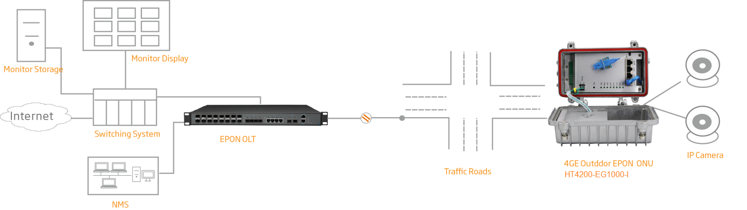 HT4200-EG1000-I支持上下行對(duì)稱的1Gbps傳輸速率,與OLT局端設(shè)備配合使用,為用戶提供良好QOS保證、靈活帶寬分配的以太網(wǎng)業(yè)務(wù)及IP綜合業(yè)務(wù)。