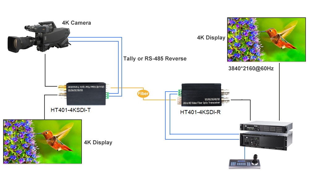 HT401-4KSDI-T/R迷你單芯非壓縮12G-SDI數(shù)字光端機(jī)是由12G-SDI發(fā)送機(jī)和接收機(jī)組成,支持UHDTV/4K/8K/HDTV/SDTV SDI高清視頻,通過(guò)單芯單模光纖傳輸高清SDI和反向Tally指示燈信號(hào)。HT401-4KSDI-T/R光端機(jī)傳輸具有傳輸距離遠(yuǎn)(1-80km)、頻帶寬、抗干擾性能強(qiáng)、安全性能高、體積小、重量輕等優(yōu)點(diǎn),適用于長(zhǎng)距離和特殊環(huán)境傳輸。12G-SDI數(shù)字光端機(jī)已經(jīng)廣泛應(yīng)用在各大型多媒體視頻錄制、高清顯示、信息發(fā)布和新聞中心、交通誘導(dǎo)和信息顯示系統(tǒng)、戶外大屏顯示系統(tǒng)、大型舞臺(tái)展示和娛樂(lè)中心、電視直播、多媒體會(huì)議、軍事指揮和演習(xí)等多個(gè)領(lǐng)域。