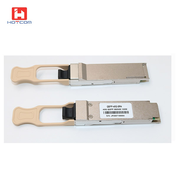 The Hotcom 40G QSFP+ SR4 100m/150m optical transceiver HT-40G-QSFP+-SR4 is designed for Data Center 40GBASE-SR4 Ethernet, 4x 10GBASE-SR Ethernet and OTN OTU3 links reach up to 100m (OM3) or 150m (OM4) over Multi-Mode Fiber (MMF).