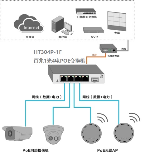 鴻騰HT304P-1F百兆1光4電PoE交換機以其強大的適應(yīng)能力,優(yōu)異的大數(shù)據(jù)處理能力,以及長時間穩(wěn)定工作的特性,在不同場景中均得到廣泛的應(yīng)用,成為小型工程及大型工程邊緣產(chǎn)品最理想的選擇。