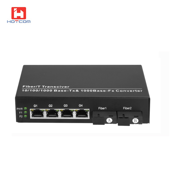 HT3204GR-MG2/SG2 千兆2光4電自適應(yīng)快速以太網(wǎng)光纖收發(fā)器/交換機(jī),采用進(jìn)口專業(yè)級(jí)交換機(jī)通信芯片,以成熟穩(wěn)定的技術(shù),防靜電能力強(qiáng),優(yōu)勢(shì)的方案完成快速以太網(wǎng)雙絞線電信號(hào)到光纖光信號(hào)的雙向介質(zhì)轉(zhuǎn)換,將網(wǎng)絡(luò)信號(hào)通過(guò)一芯光纖傳輸遠(yuǎn)端20公里外,實(shí)現(xiàn)了寬帶城域網(wǎng)通信的接入。千兆2光4電光纖收發(fā)器/交換機(jī)設(shè)備具有高速率,高帶寬,功耗小,電磁兼容性好,安全,使用壽命長(zhǎng)的優(yōu)勢(shì)。