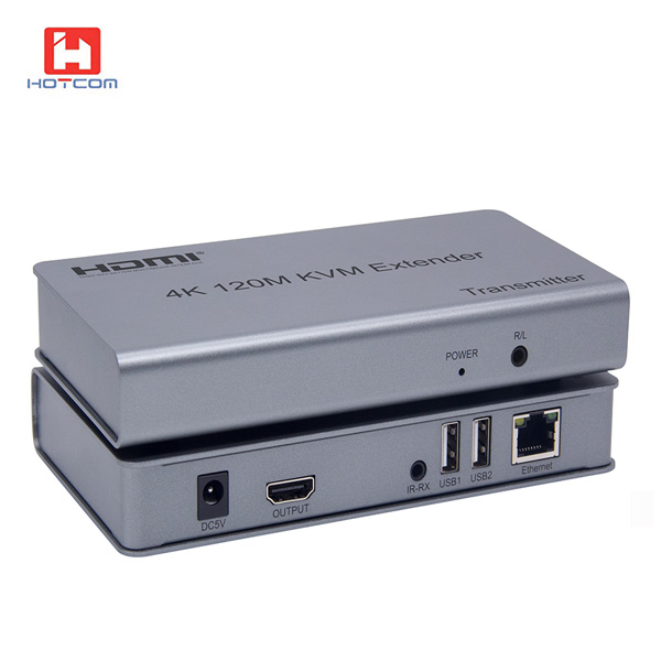 1.用一條HDMI線纜將信號源與延長器的發(fā)射端連接起來,線纜最長可達10米。