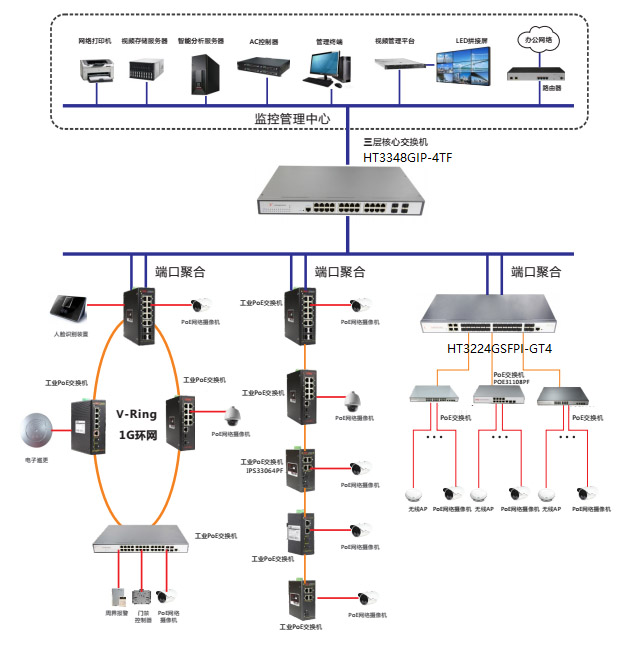HT3348GIP-4TF系列是鴻騰自主研發(fā)的三層網(wǎng)管POE供電交換機(jī),支持48個(gè)10/100/1000Base-T自適應(yīng)RJ45口+4個(gè)1/10G SFP+萬兆光口插槽。1-48端口支持IEEE 802.3af/at標(biāo)準(zhǔn)PoE供電,單端口PoE功率達(dá)30W,整機(jī)最大PoE輸出功率為600W。作為PoE供電設(shè)備,能自動(dòng)檢測(cè)識(shí)別符合標(biāo)準(zhǔn)的受電設(shè)備并通過網(wǎng)線為其供電�?赏ㄟ^網(wǎng)線為無線AP、網(wǎng)絡(luò)攝像頭、網(wǎng)絡(luò)電話機(jī)、工業(yè)傳感器等POE終端設(shè)備供電,滿足對(duì)高密度PoE供電有需求的網(wǎng)絡(luò)環(huán)境,適合智能交通、軌道交通、電力行業(yè)、礦業(yè)開采、石油、海運(yùn)、冶金及綠色能源建設(shè)等工業(yè)場(chǎng)景組建經(jīng)濟(jì)高效、穩(wěn)定、可靠的通信網(wǎng)絡(luò)。