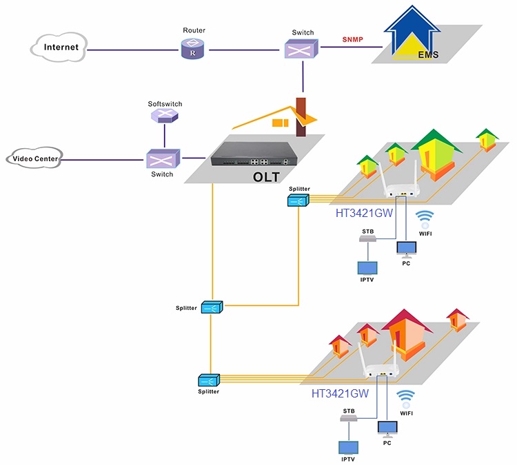 HT3421GW-X ONU產(chǎn)品支持一路CATV電視射頻信號(hào)輸出和一路語(yǔ)音電話功能擴(kuò)展.