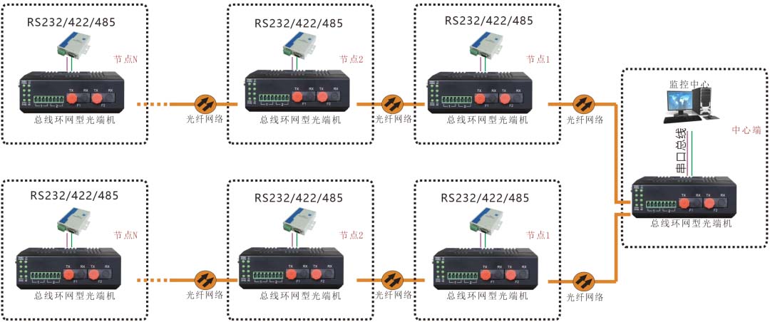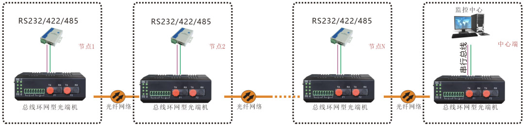 本系列產品應用靈活,同時,該系列產品可采用雙光口實現雙纖環(huán)網冗余功能,當某處光纖故障時,系統(tǒng)會在10ms內重建網絡鏈路,保障系統(tǒng)的正常通信,實現對總線信號傳輸的自愈保護功能,網絡故障排除后系統(tǒng)會自動恢復;