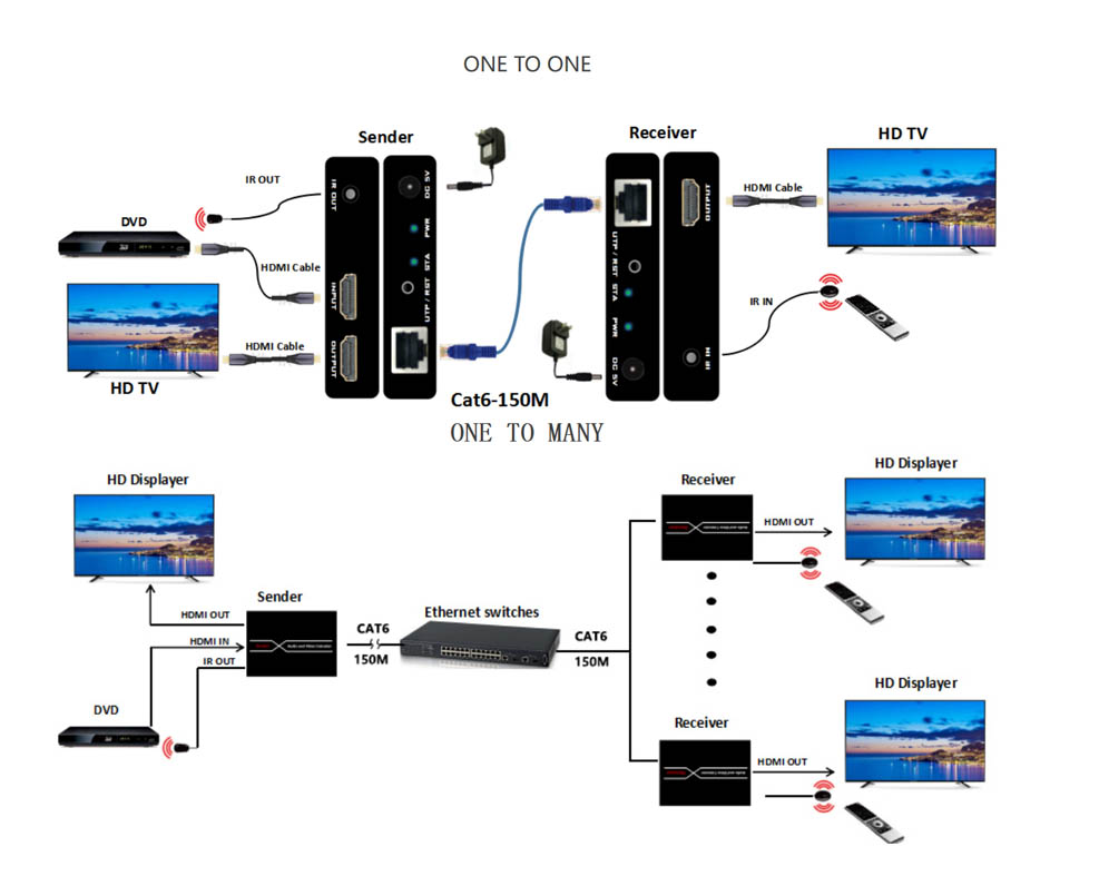 HT401-EX150-4K-T/R是通過Cat5e及以上規(guī)格的單根網(wǎng)線將HDMI音視頻信號高清傳輸最長至150米,支持TCP/IP網(wǎng)絡(luò)協(xié)議,可通過交換機(jī)實現(xiàn)一個發(fā)射機(jī)對多個接收機(jī)傳輸,遠(yuǎn)距離傳輸?shù)耐瑫r支持本地HDMI輸出,支持雙向獨立音頻傳輸,RS232透傳,紅外回傳在顯示器端遠(yuǎn)程控制播放器.