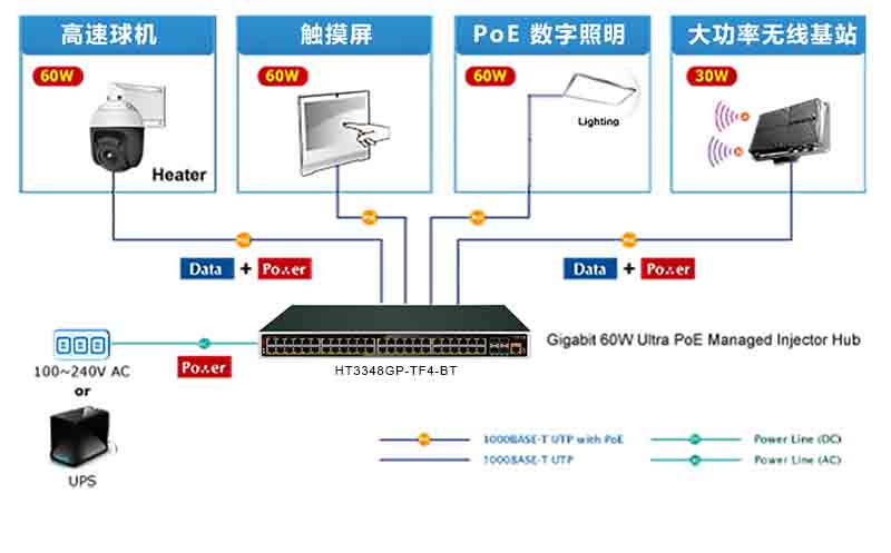 HT-PSE-BT90W: single port PoE injector, support max 90W output