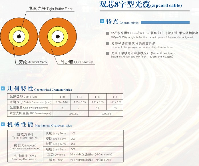 The aramid reinforced elements make the optical cable have excellent tensile properties