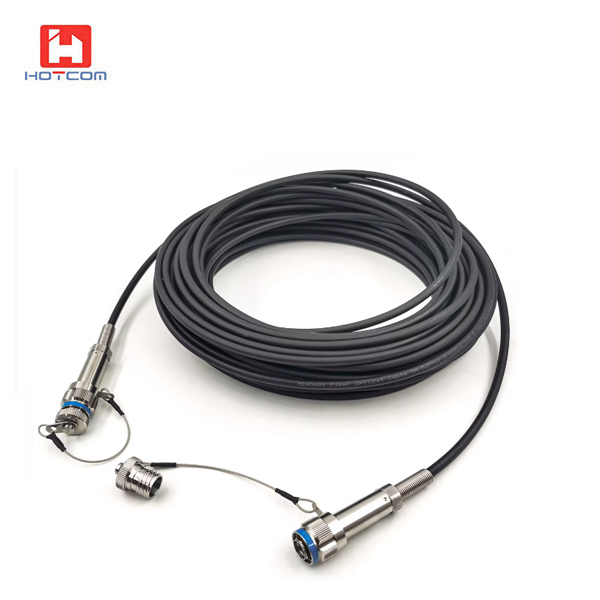 J599 MPO fiber assemblies use J599 housing for MPO high density connector to be assembled with TPU jacket armored tactical 12 or 24fiber cable. The J599 shell, using 316L or aluminum alloy features with screw and five keys location to have fast blind connection.