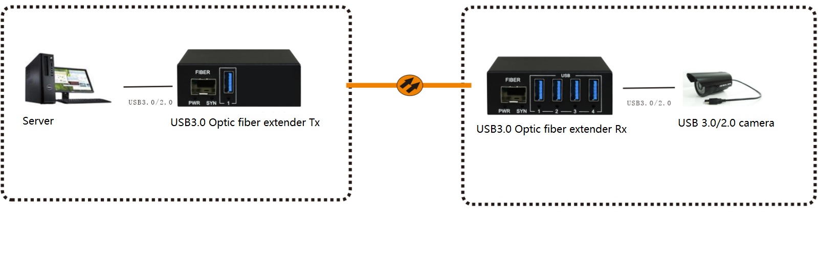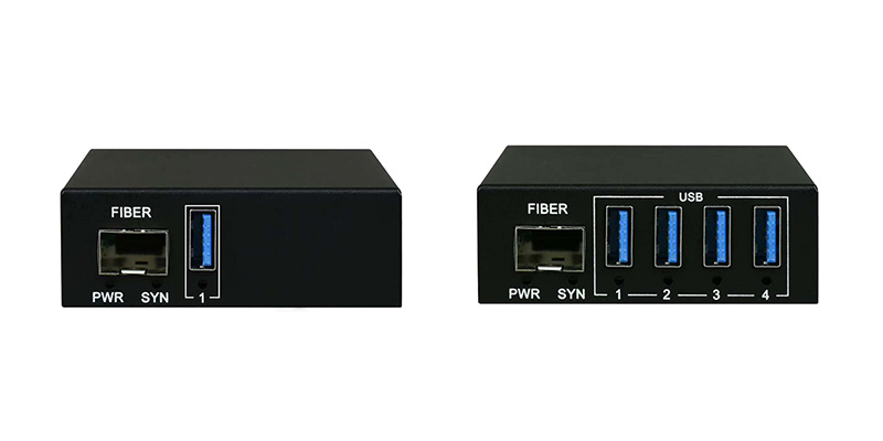 HT401-104U-T/R Series USB3.0/USB2.0 Optical Transmitter and Receiver consists of a transmitter and a receiver, which extends the USB interface (USB3.0) of the host computer to the remote end and expands it to 4 USB ports via single-mode or multimode optical fiber. The maximum transmission distance is 80KM (single-mode fiber optic).