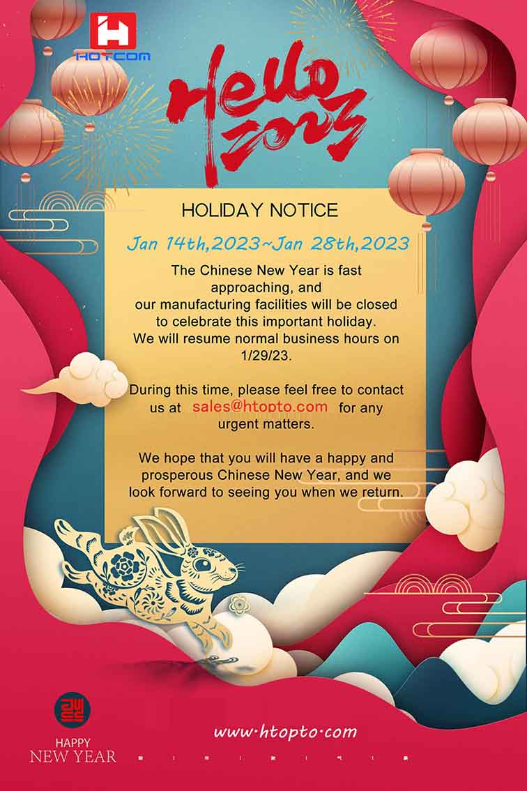 The Chinese New Year is fast approaching, and our manufacturing facilities will be closed to celebrate this important holiday.