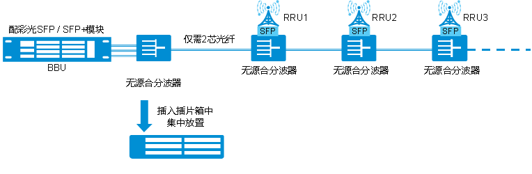 ● When BUU and RRU are serially grouped, such as in tunnel, indoor distribution, high-speed railway line, etc.